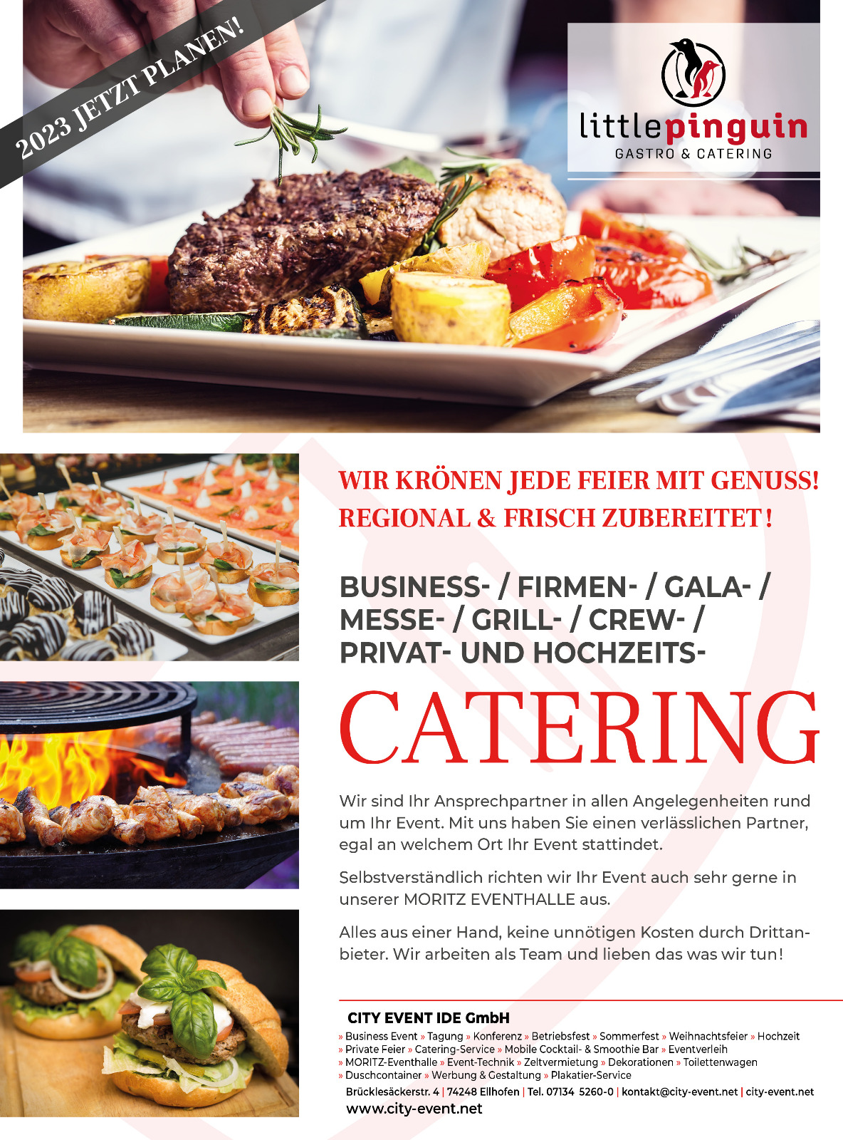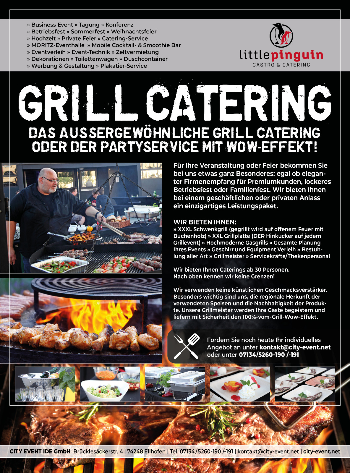 schafft, über ein Catering ganz nach Ihrem Geschmack in Form eines Buffets, als Grillfest oder American BBQ oder thematisch gestaltet. Wir organisieren für Sie ein attraktives Rahmenprogramm, das